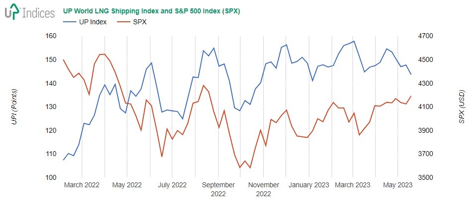 Chart of constituent denominated to USD and the UP World LNG Shipping Index chart
