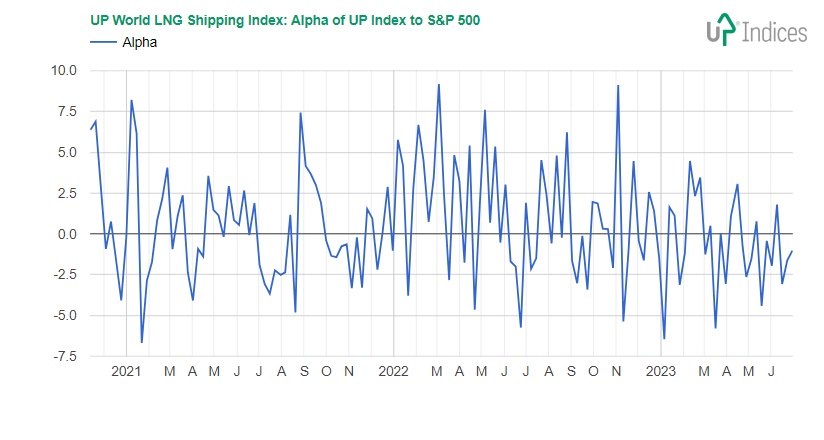 Chart of constituent denominated to USD and the UP World LNG Shipping Index chart