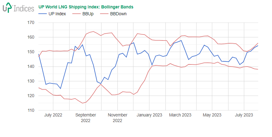 Chart of one individual constituent (company or partnership) and the UP World LNG Shipping Index