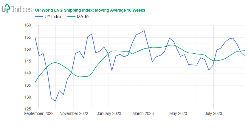 Chart of constituent denominated to USD and the UP World LNG Shipping Index chart