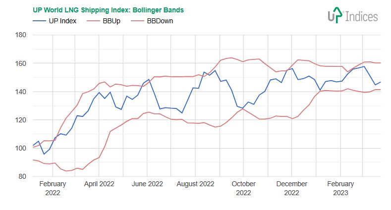 Chart of one individual constituent (company or partnership) and the UP World LNG Shipping Index