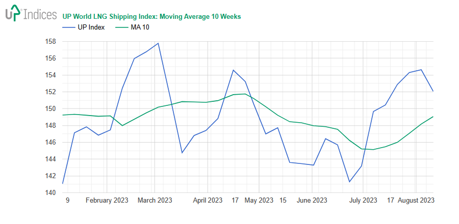 Chart of one individual constituent (company or partnership) and the UP World LNG Shipping Index