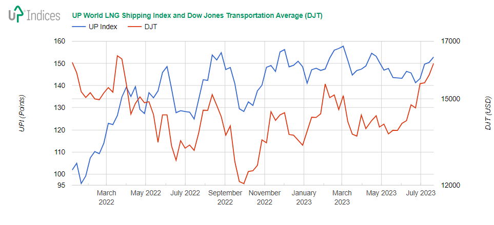 Chart of one individual constituent (company or partnership) and the UP World LNG Shipping Index