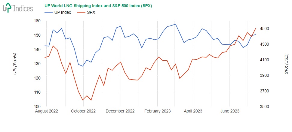 Chart of constituent denominated to USD and the UP World LNG Shipping Index chart